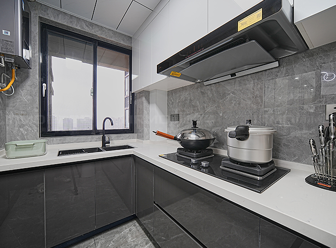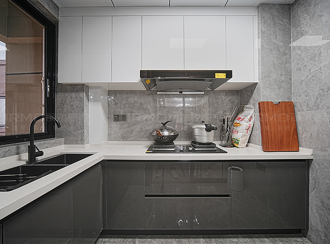 簡(jiǎn)約大氣,上下方都有收納柜,視覺層次更加豐富,分擔(dān)了廚房收納還可以減少了儲(chǔ)物壓力。
