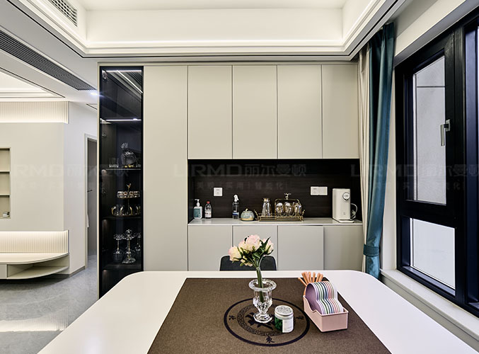 更顯極簡。左側(cè)玻璃展示柜柜門的設(shè)計更具設(shè)計感。