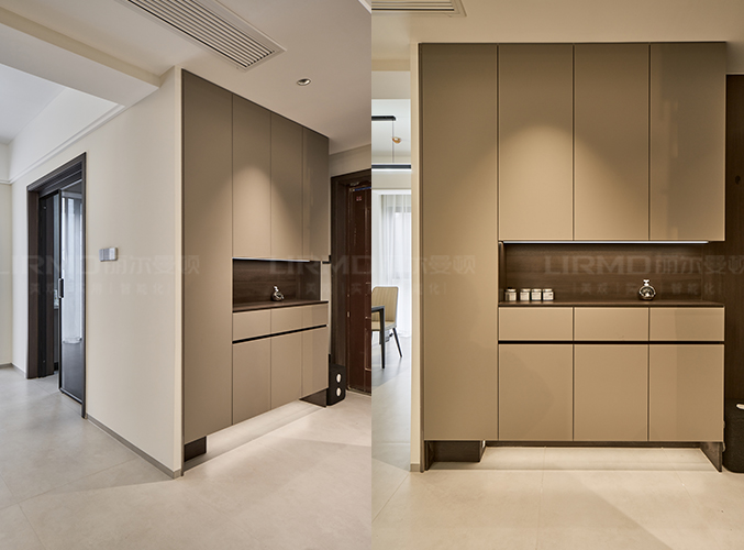 18mm厚杉木芯板,淺色柜門加深色柜體的碰撞,視覺效果更好,下方懸空設計,好放置鞋子,
