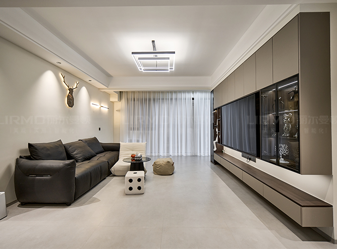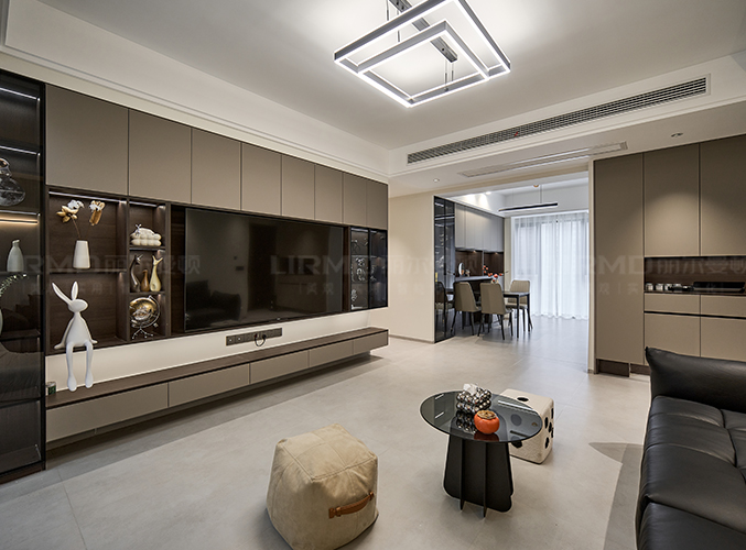 電視柜膚感飾面無拉手設計簡潔大氣。