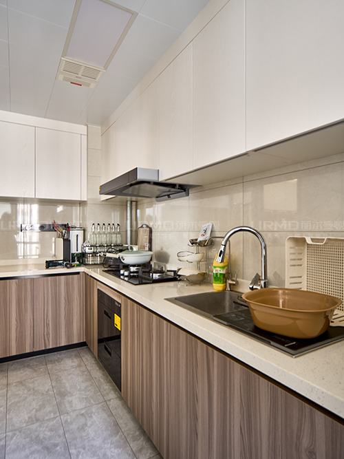 整屋通鋪瓷磚,盡顯大氣,電視懸浮柜下方留有掃地機器人位置,方便打掃無死角。
