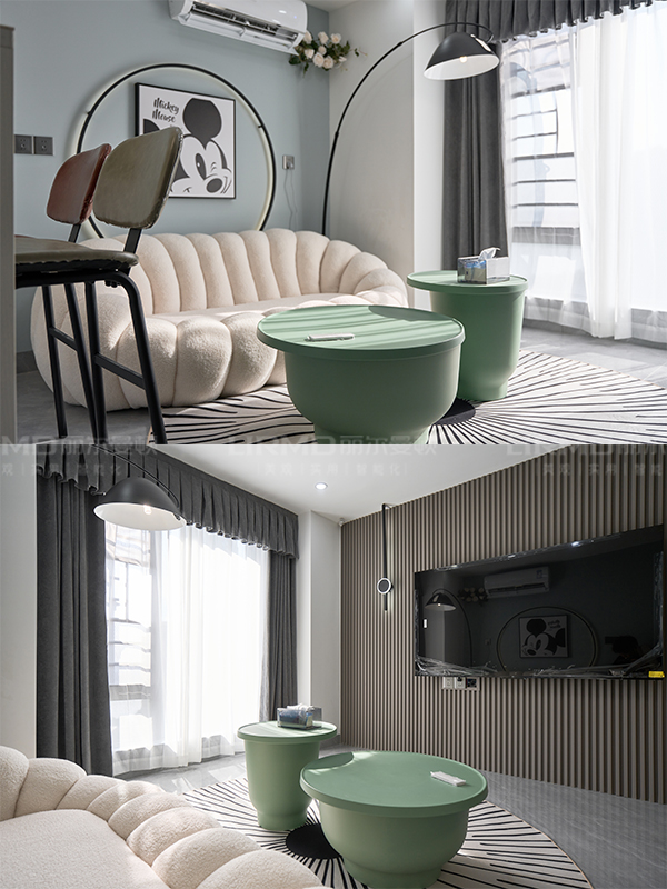 乳白色面包型沙發(fā)搭配湖藍色茶幾,時尚感upup