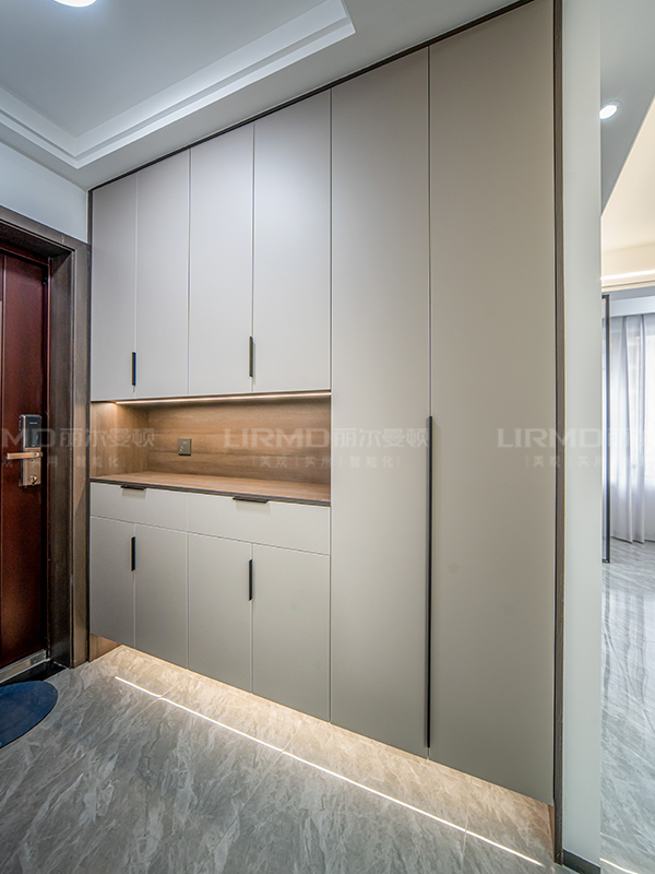 ?全屋定制:使用柜體18厚杉木芯板、歐松板膚感柜門、進口百隆五金;