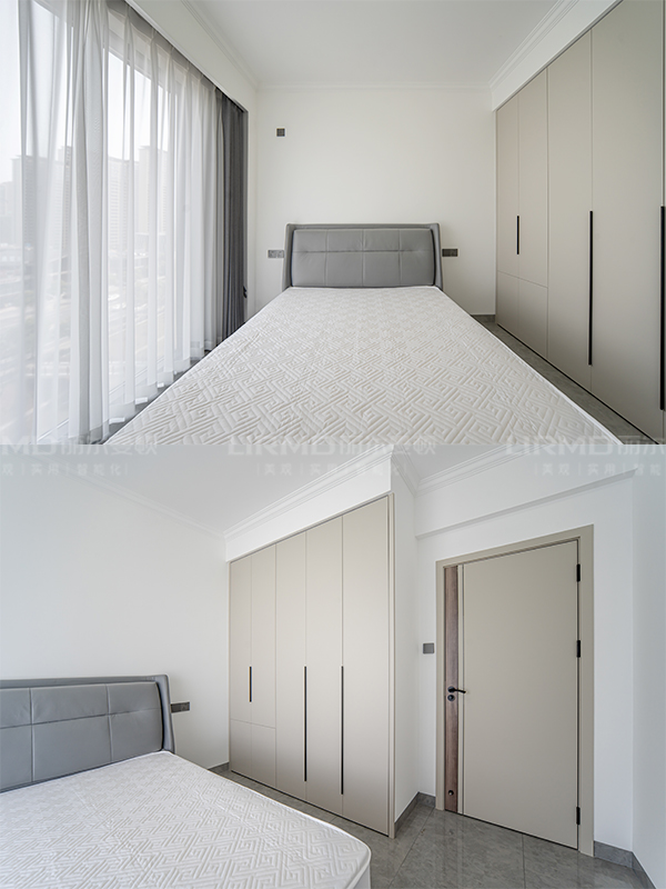 次臥整版衣柜、兒童房整版衣柜、主臥雙“一”字型衣帽柜、書房書柜、陽臺(tái)洗衣柜、