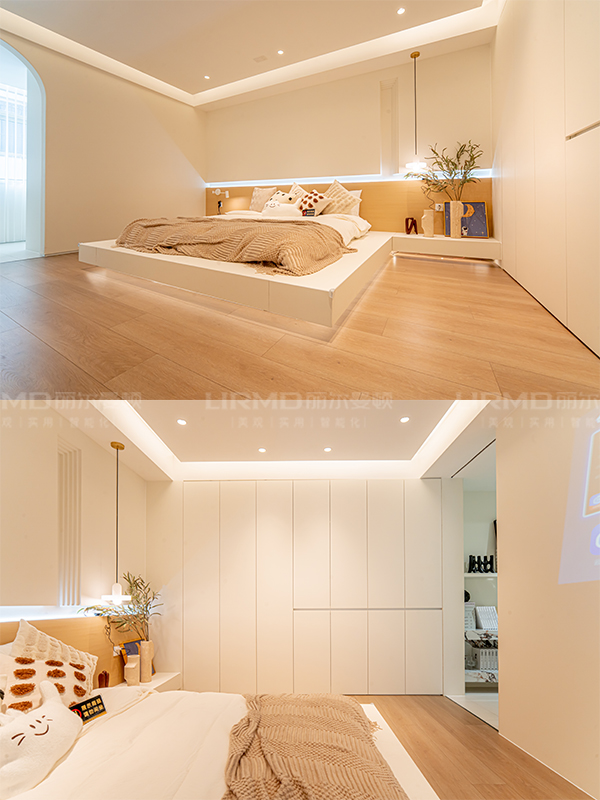 氛圍感十足,搭配投影幕布,幸福感滿滿,隱形推拉門+一體式衣帽間,真的絕了