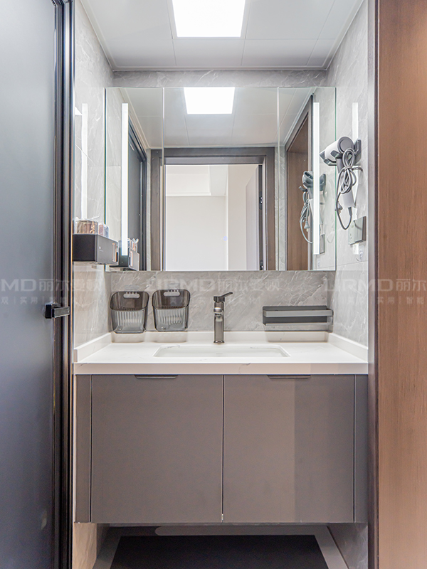 空間色調(diào)整和諧體統(tǒng)一,主要黑白灰三個(gè)色調(diào)為主基調(diào),為了不使空間單調(diào)深沉,增加撞色處理,