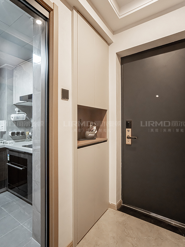 入戶玄關過道連接柜體顏色護墻板,看起來更加整體更加美觀,門套和柜門同色讓整個空間統一切美觀!
