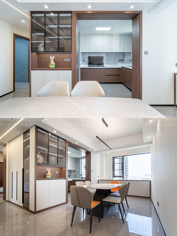 ?餐邊柜與廚房連接轉(zhuǎn)角設(shè)計(jì),就餐區(qū)相對(duì)集中,非常方便。?