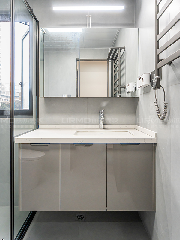 整體以黑白灰為基調,煙熏尤加利與水泥灰搭配,空間整體性更統一