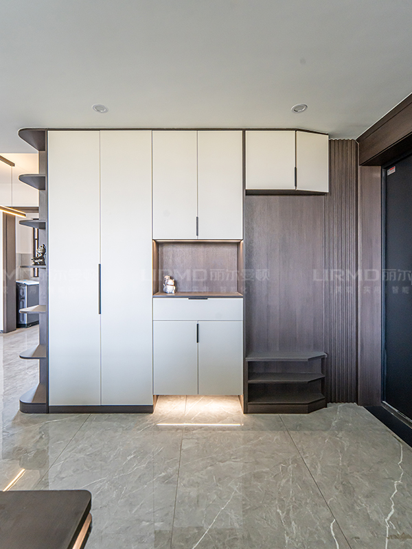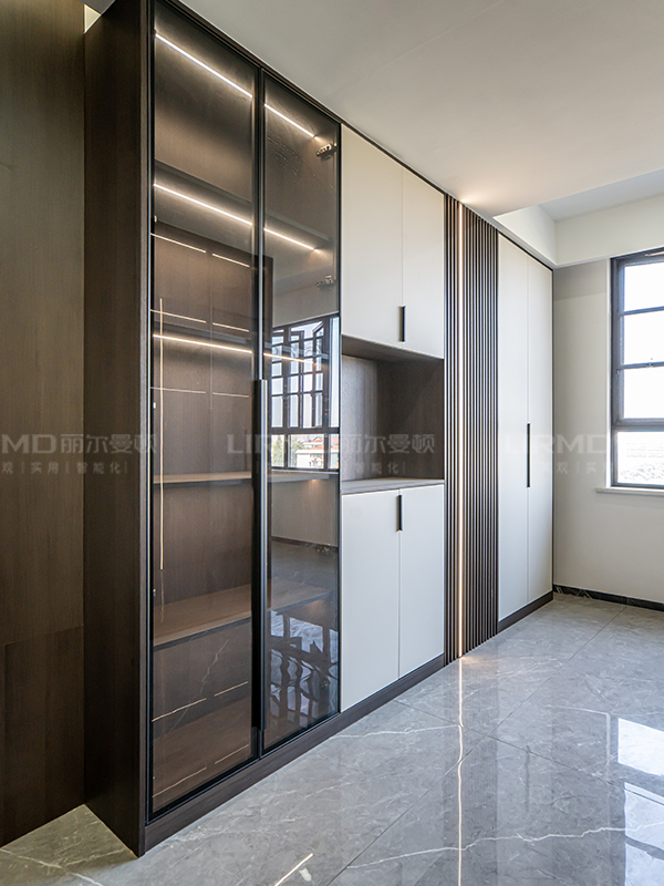 全屋高端定制:柜體板材18厚杉木實芯板,柜門有pet膚感、高光、超晶、五金使用原裝進口奧地利百隆五金