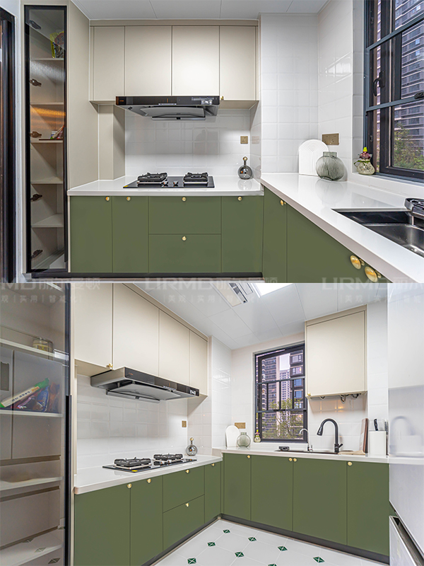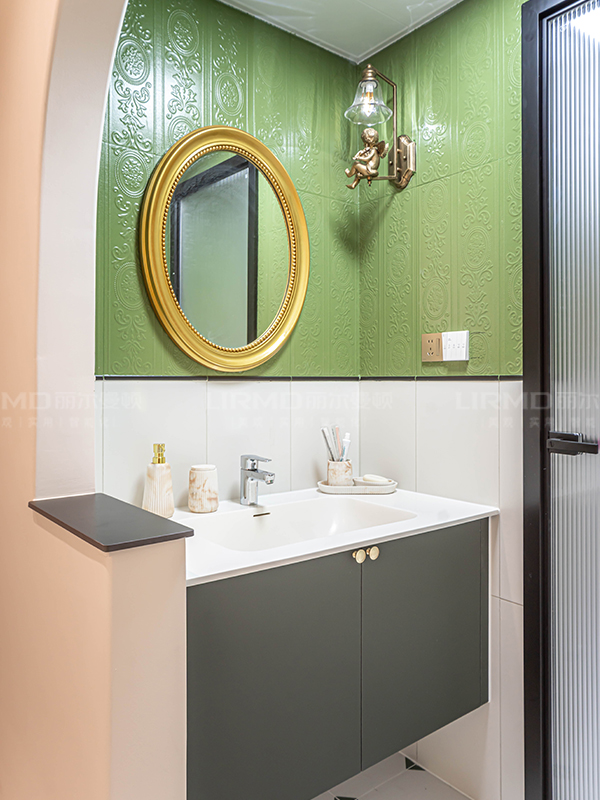 浪漫又復(fù)古的裝修氛圍,全屋以奶油白、牛油果綠、焦糖色為主