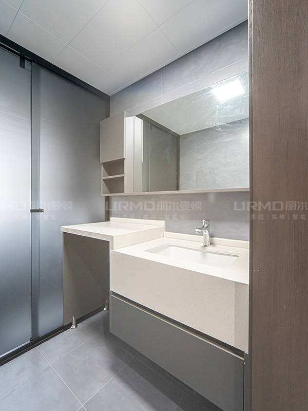 次臥衣柜+陽臺(tái)收納柜 兒童房衣柜+嵌入式書桌 浴室柜