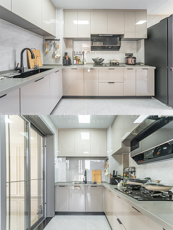 全屋高端定制:柜體板材18厚杉木實芯板,柜門有pet膚感、高光、超晶、五金使用原裝進口奧地利百隆五金