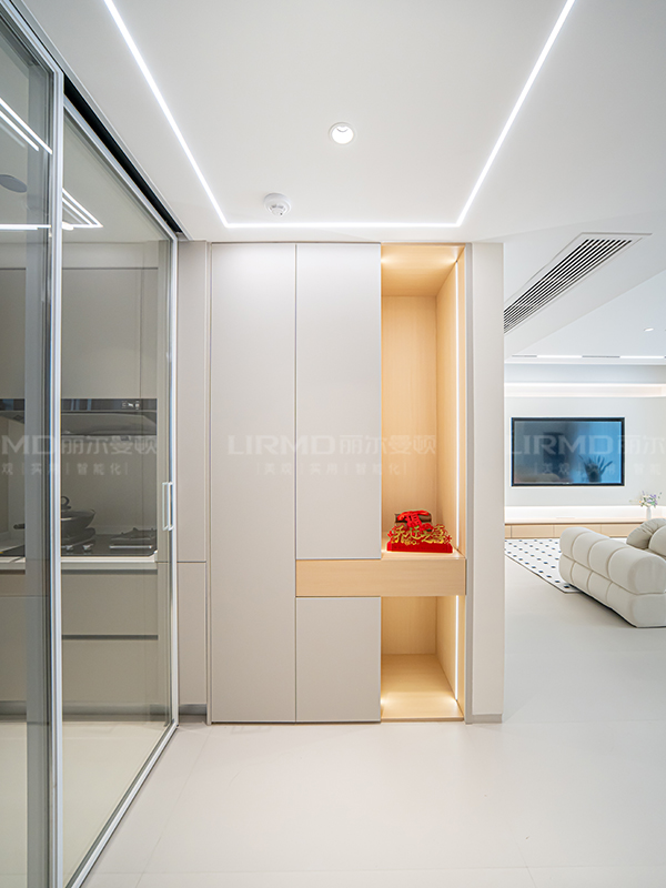 廚房改成半開放式設計,連接入戶玄關設計,整體更加通透、有層次感