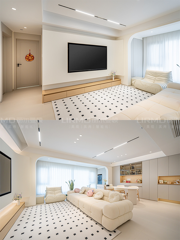 全屋整體運用大面積的奶白色,搭配原木設計,打破傳統的奶油風