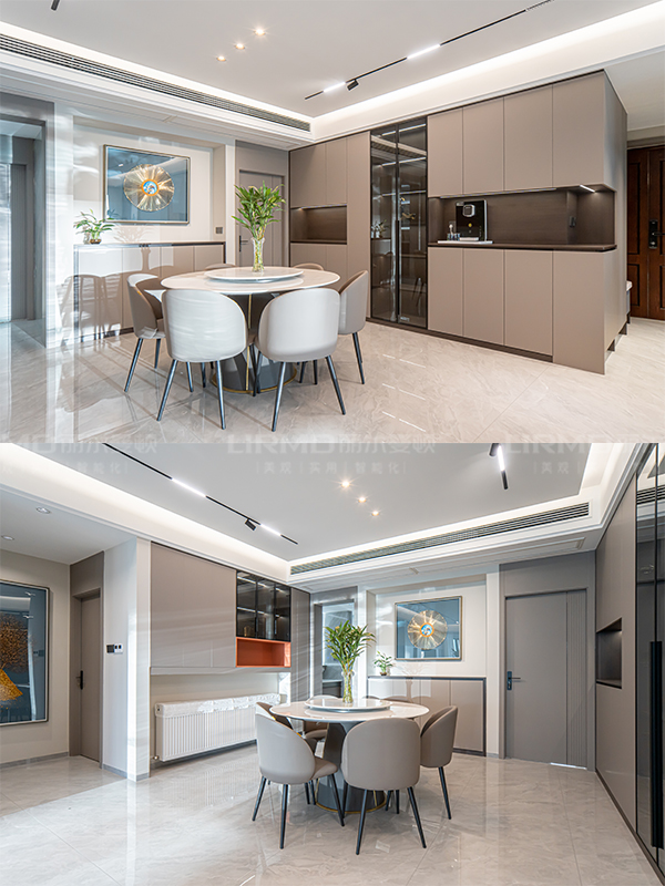 全屋高端定制:柜體板材18厚杉木實芯板,柜門有pet膚感、高光、超晶、五金使用原裝進口奧地利百隆五金