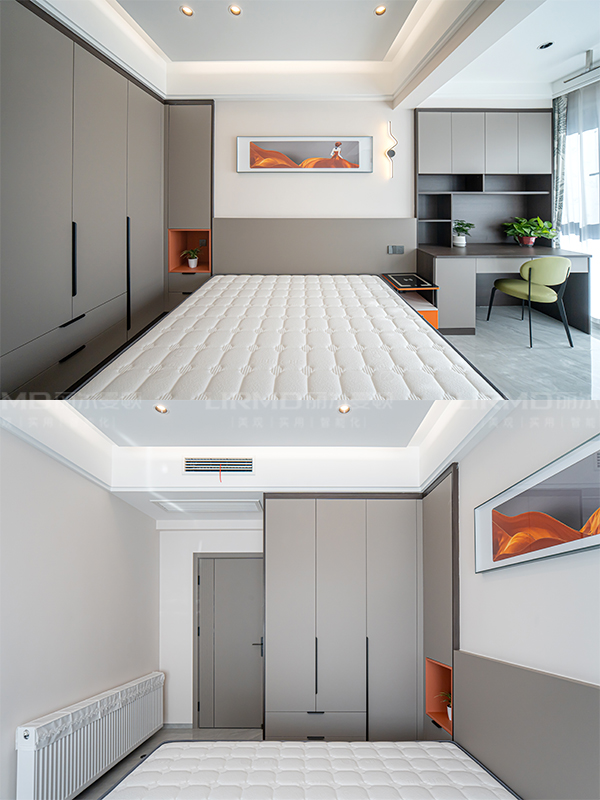臥室柜充分的利用空間設計,做滿墻設計,滿足收納需求