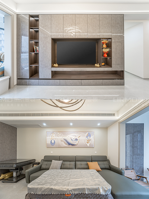回字電視背景墻,區(qū)域劃分明顯,增加收納和展示空間,實(shí)用率直線上升