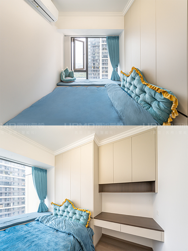全屋門墻柜一體化,采用深石紋+深色木飾面的搭配,讓空間不沉悶又有層次感