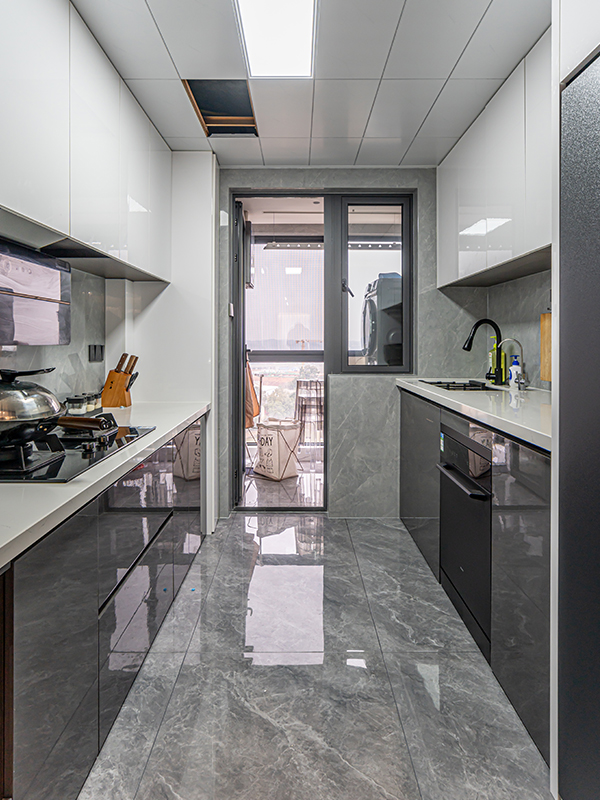 全屋門墻柜一體化定制,采用深咖棕+明亮淺灰的搭配,整體空間既不沉悶又更有層次感