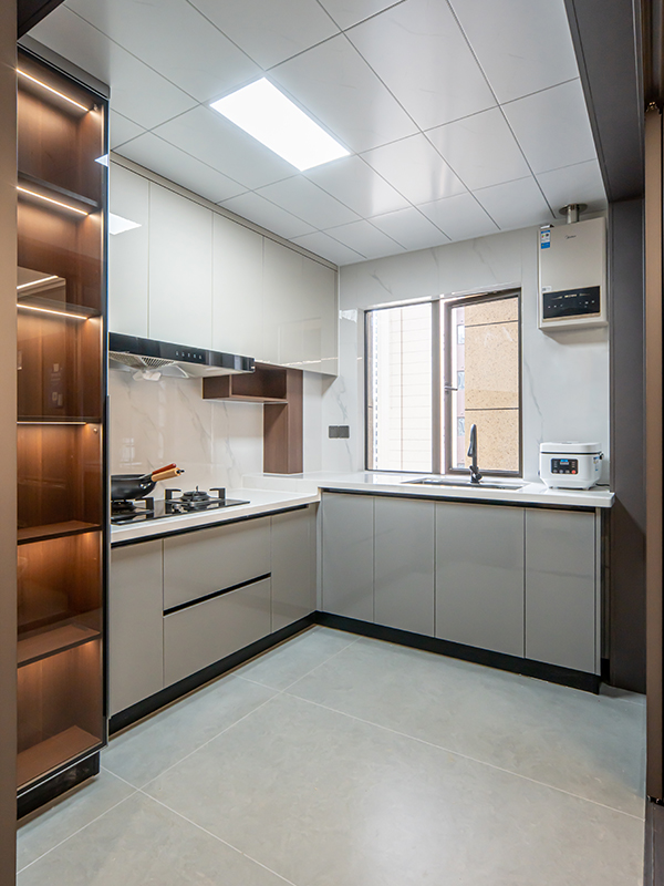 開(kāi)放式餐廚一體化,讓原本單調(diào)乏味的空間添加了互動(dòng)交流的樂(lè)趣,讓業(yè)主在做餐時(shí)不再孤立