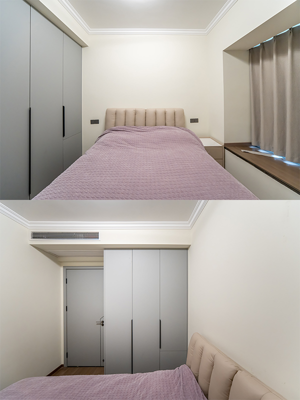 臥室衣柜小設(shè)計(jì),考慮衣柜的功能性,主臥床頭不對(duì)向衛(wèi)生間門,超符合業(yè)主想法