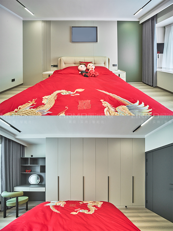 門(mén)墻柜一體化,創(chuàng)造出統(tǒng)一、協(xié)調(diào)的視覺(jué)效果,讓整個(gè)空間顯得更加一體化,營(yíng)造出簡(jiǎn)潔、整潔的氛圍
