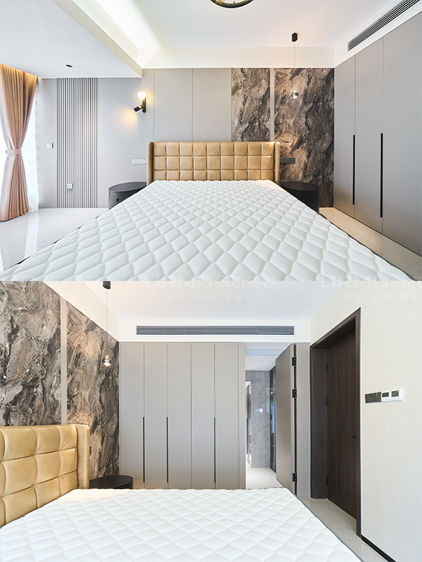 主臥利用動線做滿墻衣柜,滿足業主的收納需求