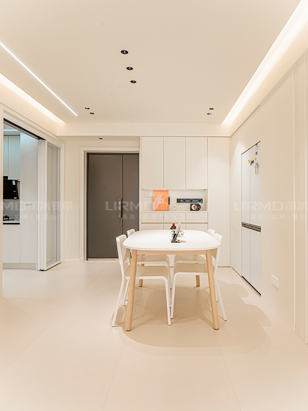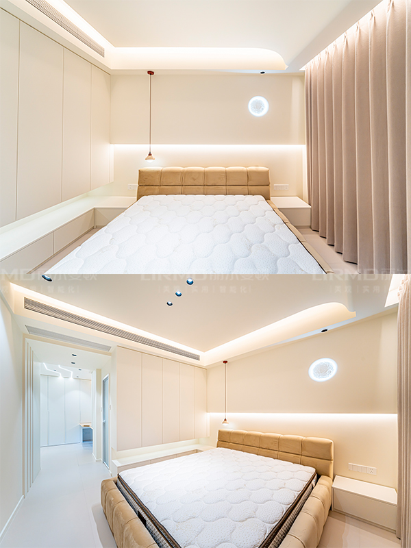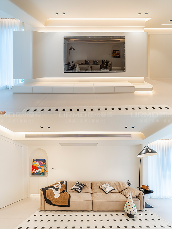 全屋做回形無主燈吊頂,延伸感拉滿的圓弧曲線大轉角端景
