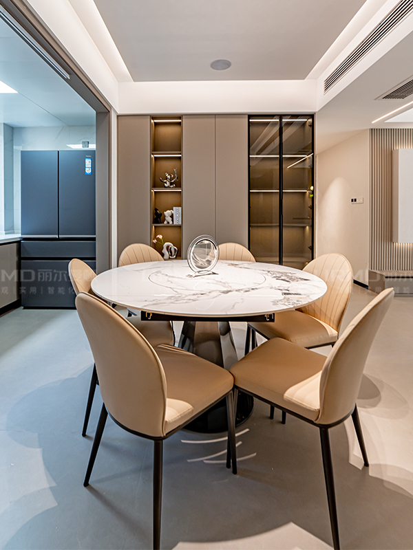 整體采用U型無拉手卡槽設(shè)計(jì),更能貼合生活細(xì)節(jié),書柜位置搭配玻璃展示柜,讓空間層次感更加分明,整體設(shè)計(jì)新穎別致