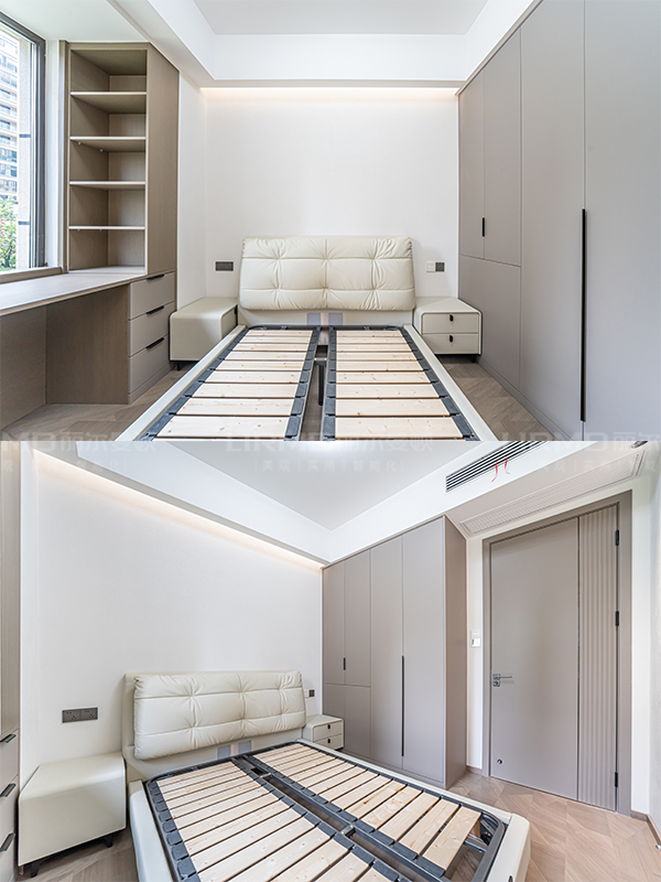 長沙靠譜裝修公司,長沙靠譜全屋定制,臥室衣柜加梳妝臺(tái),意式極簡風(fēng),