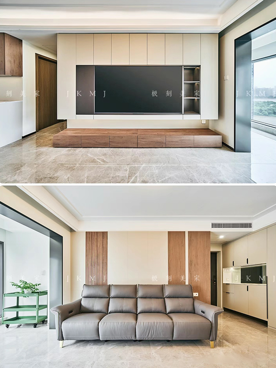 電視背景墻做滿墻收納柜,滿足客戶的收納需求