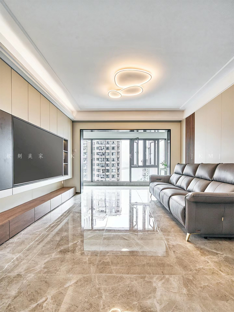 沙發(fā)背景墻做同色系墻板,整體統(tǒng)一,簡單又高級
