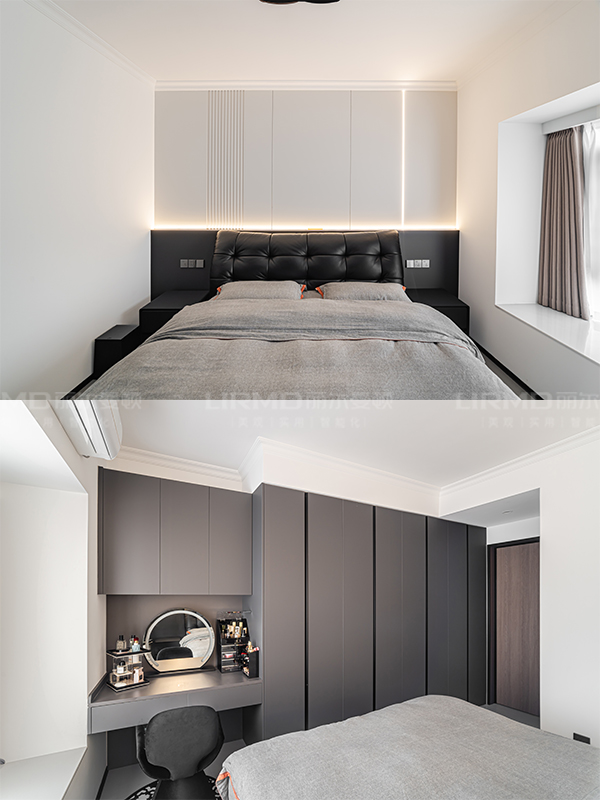 長沙靠譜裝修公司,長沙靠譜全屋定制,臥室衣柜加梳妝臺,意式風,